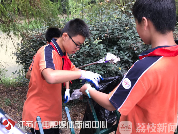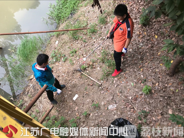 在这场环保公益活动中,年龄最大的已过七旬,最小的只有6岁,他们来自南京各中小学校和社区。今天的目标是清理双闸社区周边河道捡拾垃圾。
