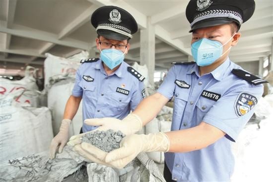 而在查办的另一起走私国家禁止进口固体废物案件中,海关缉私部门扣押了一批国家禁止进口的固体废物废铝渣。现场进入仓库,立即闻到一股刺鼻气味。走私进口这批废铝渣的犯罪嫌疑人叶某在台湾组织货源,将“废铝渣”伪报成允许进口的“炼铁促进剂”,经山东某口岸申报进境后转运至广东。经初步查证,这批涉嫌走私进境的废铝渣重达1337吨,均用白色编织袋包装,包装袋上印有供货商标识。