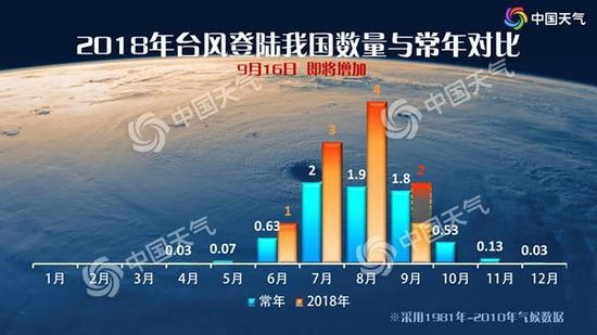 今年以来,登陆我国的台风呈个数多、偏爱上海、北上台风多、多台共舞、路径复杂多变、平均登陆强度偏弱但降水影响重等特点。截至9月14日,西北太平洋和南海共有23个台风生成,比常年同期(16.8个)偏多6.2个;9个台风登陆我国,比常年同期(5.4个)偏多3.6个,其中仅有1个登陆时达强台风级(“玛莉亚”),其余8个为热带风暴或强热带风暴级,登陆台风给华东和华南部分地区带来强降雨,局地灾害较重。