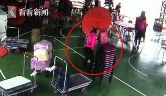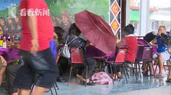 受台风“山竹”影响,台湾东部恒春半岛昨天刮起强风,有一对新人原本中午在狮子乡南世村活动中心举办婚礼,不料一阵瞬间强风将该中心铁皮屋顶掀掉一半,现场的大圆桌也被风吹起漫天飞,工作人员见状立刻四散。