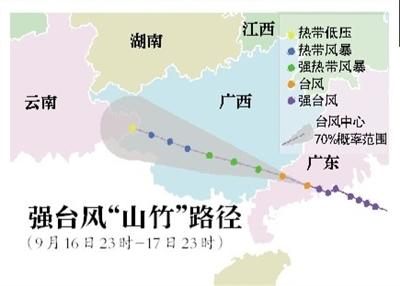 今日凌晨“山竹”将进入广西,预计明晨在广西云南交界减弱为热带低压,台风红色预警继续发布