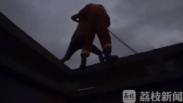 救援人员赶到现场后发现,一名年约30岁的男子,正站在居民楼楼顶的一处横梁上,男子腿部有伤,并且情绪激动,任凭现场民警和他的妻子怎么劝说,都不肯下来,并不停的横梁上走来走去,十分危险。