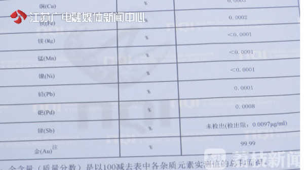 上周,荔枝新闻报道了南京市民季先生从中国黄金门店购买的金条,可以被磁铁吸引的事情。(详情戳链接news.jstv.com/a/20180911/5b979b3db8318923afd5f65c.shtml)为了搞清楚黄金纯度到底有没有达到标注的99.99%,季先生自费将其中一根金条送到第三方检测机构检测。今天(9月18日)下午,记者跟随季先生来到检测中心,检测结果显示,金条纯度为99.99%,但季先生却对检测方法存在疑问。