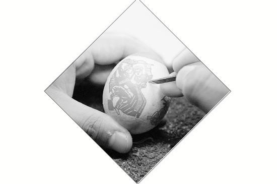 潘夏皓告诉澎湃新闻,一次偶然的机会,他在电视上看到有关蛋雕艺术的纪录片,就决定自学。从此,一把刻刀一箩筐鸡蛋壳成了他上班的标配。每天送完报纸,他开始一刀一刀地在鸡蛋上雕花雕草雕美女。那时损毁的蛋壳很多,经常要去买鸡蛋,“天天都吃鸡蛋做的菜,现在对吃鸡蛋都有点怕了”。