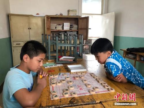 在一间自习室,有两个孩子在下象棋。 李庭耀 摄