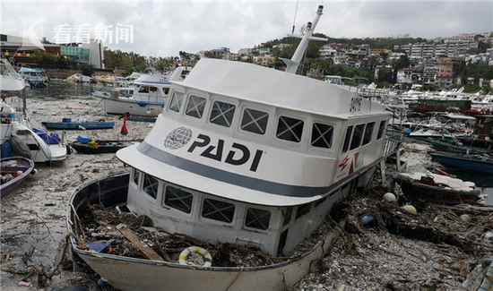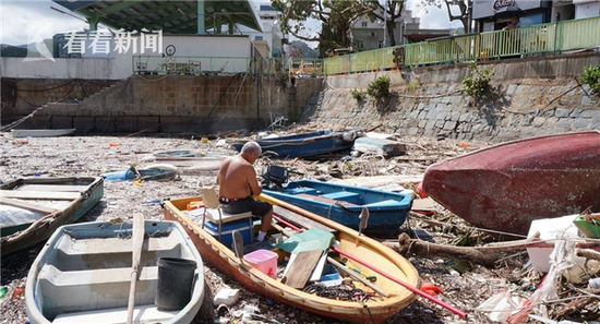 “山竹”灾后:西贡成垃圾海 千万游艇被吹上岸(来源:~)