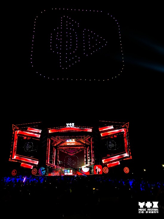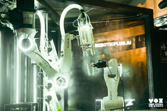 在科技互动体验区,还有类似从美剧《西部世界》穿越过来的机器人调酒师,为乐迷现场特调一杯酒。酷炫MAX力十足的机械臂舞台,与音乐节现场演唱的音乐人实时互动,画面科幻感满满,子弹时间带来的酷炫拳击观感震撼。当现场演出达到沸腾时,200台闪烁霓光的无人机出现在音乐节上空,通过数字远程调控,变换出5种不同的图案,这种别具一格的互动方式,烘托了不少浪漫气氛。