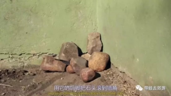 又一次,清洁场地的阿姨忘记拿走扫地的扫把了,于是,它们还学会使用扫把这个工具。