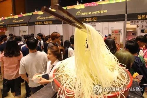 资料图片:2017年9月10日,在首尔韩国国际会展中心,“大韩民国方便面博览会”活动现场人头攒动。(图片来源:韩联社)