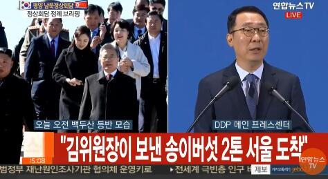 韩国青瓦台国民沟通首席秘书尹永灿20日公布这一内容时说道:“总统及第一夫人还在朝鲜的时候,金委员长的礼物先到了。”据他介绍,当地时间当天凌晨5点30左右,来自朝鲜的2吨松茸已经到达首尔机场。这些松茸将被送给包括高龄老人在内的4000名离散家属,每人500克。