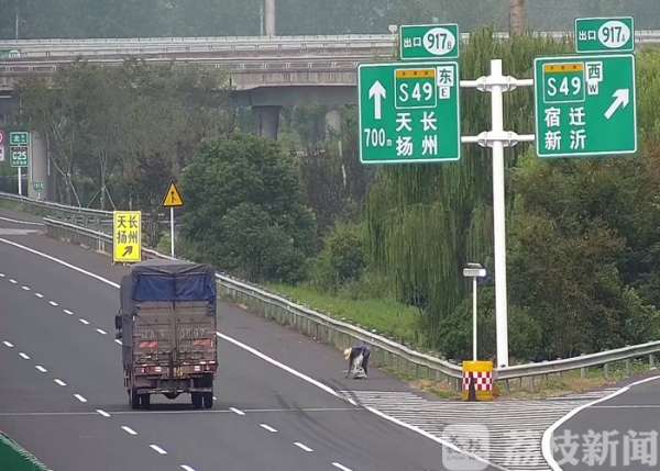 昨天(9月20日)中午12时04分许,淮安市公安局交警支队高速三大队勤务指挥室民警在视频巡查时,发现G25长深高速1918K+870M处一男子在应急车道上行走,当民警拉近监控镜头时才知,原来该男子竟是一名肩背编织袋在高速路上捡拾废品的老人。