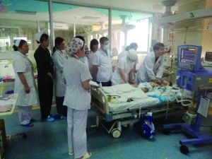 然而,下午两点多,就在转运车刚从上海出发不久,小雨的病情急剧恶化,血压直线下降至无法测出,心跳呼吸停止!全科医护人员随即投入紧张的抢救当中,大家轮流不停地进行心脏按压。