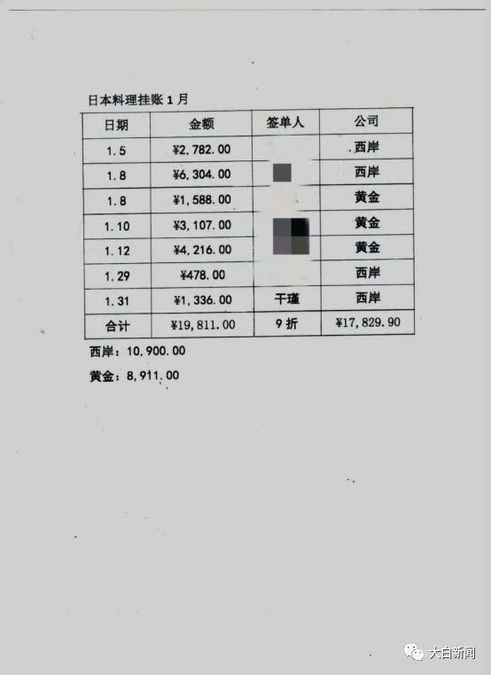 据了解,在2014年10月至2015年6月共9个月营业期间,樱缘日本料理餐厅应向上海黄金世界商厦有限公司支付租金、物业费、水电费共计295178元。“在这段时间,该公司及总公司(西岸集团)领导在餐厅挂账消费共计290226元,他们便提出餐厅应付费用与挂账消费相冲抵。”王女士表示:“他们在餐厅大吃大喝,抵账之后企业是没有收入的,还得垫付水电费的费用。也就是说,国企领导们的个人消费最终由公家来买单。”
