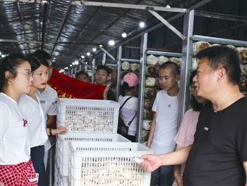 乡村人才招引助理员深入食用菌大棚了解情况。