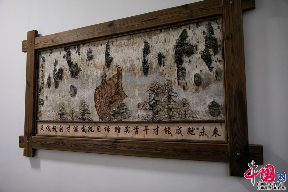 5/9树皮画除了颜值高,内涵也相当丰富。据了解,树皮画在设计创作环节,就结合树木自然纹理“依势而为”,完美地把漠河雷达站的建站史融合进去。成画后辅以文字,展现出该站官兵不惧严寒、不畏艰苦,在艰苦中作为、在坚守中强军的精气神。中国网记者 董宁 摄影