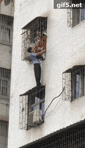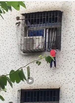 部分路人看到这情景,有的吓得惊呼,有的拍下视频,也有人紧忙报警。在这紧急关头,苏先生三步并作两步跑到该楼下,沿着窗台一层层的外上爬,迅疾徒手爬到四楼高的防盗网处,用尽力气把小孩举起,为孩子抢得最关键的抢救时间。