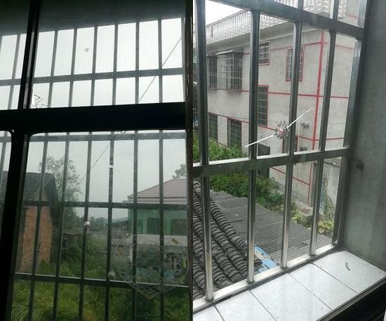 澎湃新闻获取的事发现场图片显示,一村民家中的窗户玻璃被打多个孔,且出现裂痕。村民彭女士介绍,事发9月21日晚8点左右,其哥哥当时正在客厅看电视,突然听到“砰”的一声枪响,客厅窗户玻璃出现了一个孔。枪声吓坏彭女士的哥哥,他赶紧躲到客厅沙发后。紧接着,又是接连传来几声枪响,卧室玻璃上出现多个孔。当晚,彭女士哥哥报警,有警察前来现场了解后,说是弹珠枪,勘察发现,卧室和客厅玻璃上留下了11处弹孔。