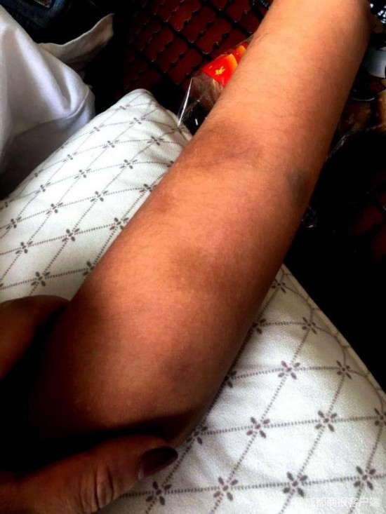 ▲刘女士提供的孩子手臂背部多处淤青