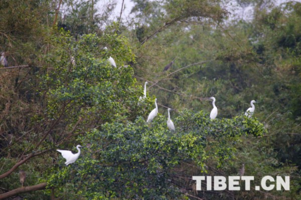 图为小鸟天堂景区大批珍贵的鹭鸟。
