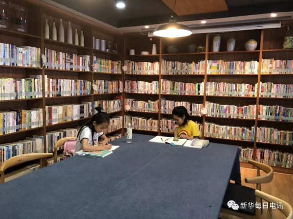 “每逢周一市图书馆闭馆,店里顾客就要多上二、三十个。”吴金萍笑着解释道,“客人不消费也没关系,都可以坐下来看书、借书!”