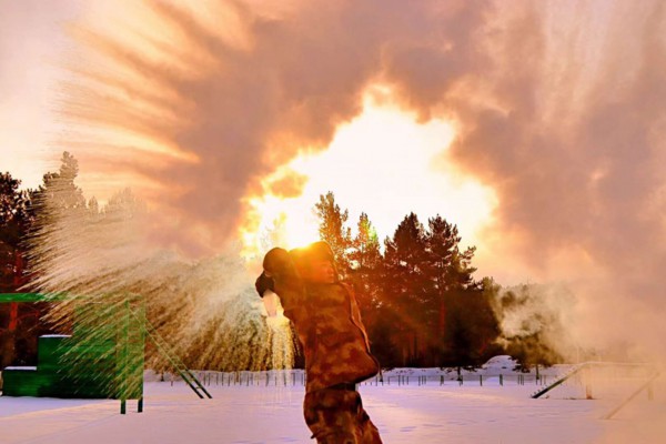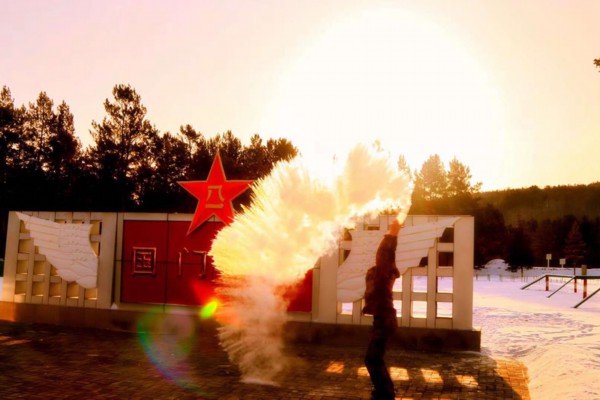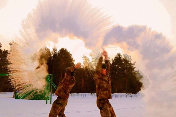 “泼水成冰”是官兵们冬日必有的户外活动 “北极哨所”供图