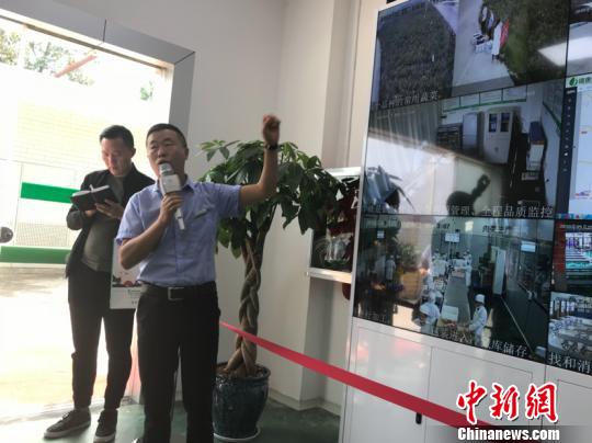图为黔南惠水县绿康源学生营养餐食材集中配送中心相关负责人在介绍营养餐管理系统的情况。 冷桂玉 摄
