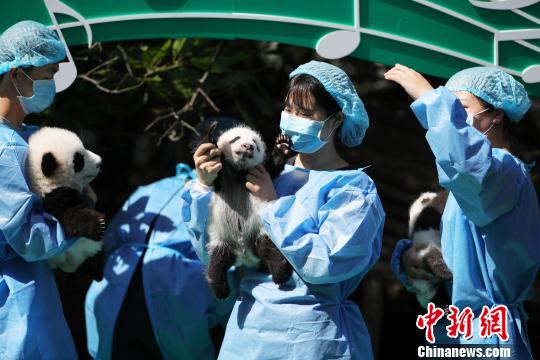 中新网成都9月28日电 (记者 安源)记者28日从成都大熊猫繁育研究基地(以下简称“成都熊猫基地”)获悉,该基地于今日为2018年出生的12只新生大熊猫举行了一场别开生面的亮相活动。