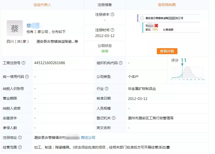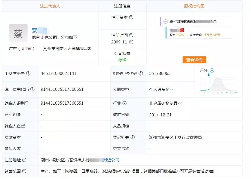 工商资料显示,蔡先生和他的哥哥名下各有一家瓷器厂。蔡先生说,哥哥一般在潮州住,“他有两套房,三辆车。我在村里住,距离父母不远,骑摩托也就五六分钟。自从去年被大哥的儿子打后,就再没联系过他们。”