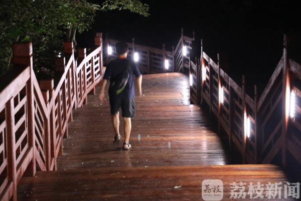 9月28日晚,紫金山人行栈道从龙脖子路到琵琶湖,约400多米架空栈桥的栏杆壁灯开始亮灯,散发出柔和的光线,为漫步于此的行人照亮道路。