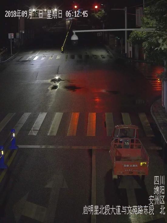 通过调取事发地点监控,发现环卫工人确实是在事发地进行路面清扫,能够看到环卫工人携带的肩闪灯光。肇事司机驾驶三轮车(后查明),行驶到环卫工人处,将其撞倒,停留了几秒钟后便离开离现场。
