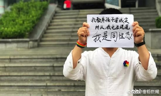 【#教师因同性恋身份被开除#他向法院申诉争取权益】31岁的山东教师明珏因同性恋身份在家长前曝光,被校方决定开除;他已从事教师工作近10年。9月19日,明珏向青岛劳动人事争议仲裁庭递交申请书。他在庭外手举标牌,上写:“我教导孩子要诚实,所以我无法说谎。我是同性恋。”27日,仲裁委员会正式立案,这是同性恋教师劳动权益的第一案。