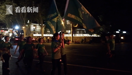 9月29日晚,杭州西湖风景区 ,一大群男男女,手举大旗,手拿高音音响,在西湖边成群结队暴走,引起附近游客和市民围观。