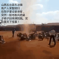 视频中标注的文字称:“山西五台县东冶有家人娶媳妇,在院子里设宴请客,突然一股龙卷风把桌子刮得满院跑。实在是天下怪事!”有网友质疑该视频的真实性,龙卷风哪有这么小,而且出现在大晴天。还有网友认为此视频可能是经过后期制作。那么,这事究竟是真的吗?