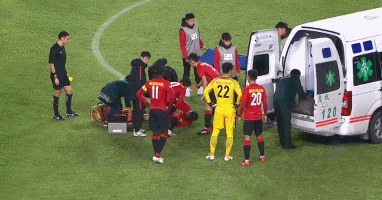 比赛第19分钟,辽足队长张野在和对手外援多利的一次拼抢中严重受伤,导致自己左腿小腿直接骨折,救护车紧急到场治疗,最终把张野拉离球场,紧急送往医院。