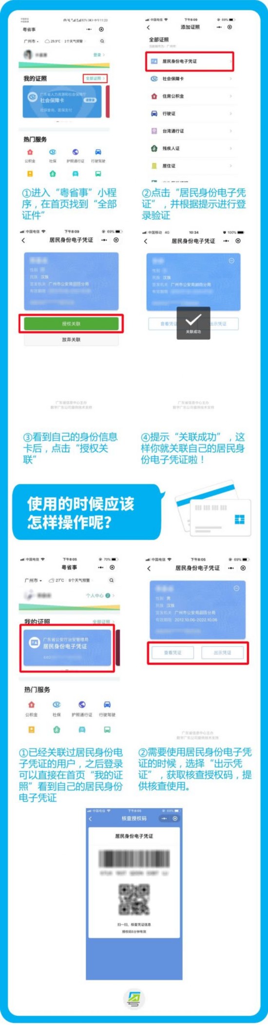 已领取广东签发的居民身份证,公安机关相应生成居民身份电子凭证。持证人可通过登录“粤省事”小程序,实名实人验证后关联本人的居民身份电子凭证。