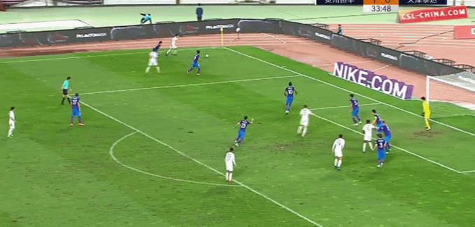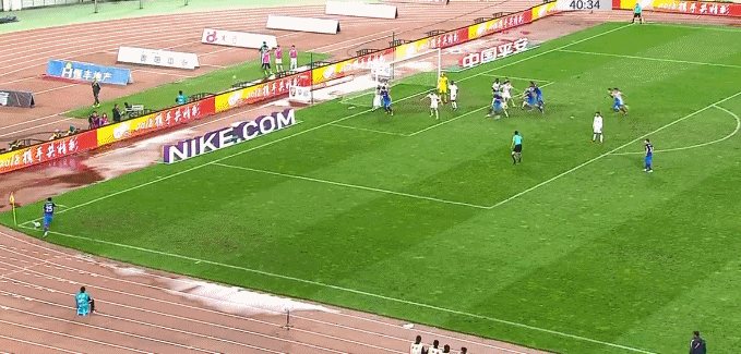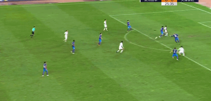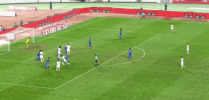 第53分钟,泰达长传球送到禁区,贵州后卫头球后蹭,张思鹏和蒋亮随后出现配合失误,买提江插上近距离的头球攻门,在张思鹏的干扰下顶偏。