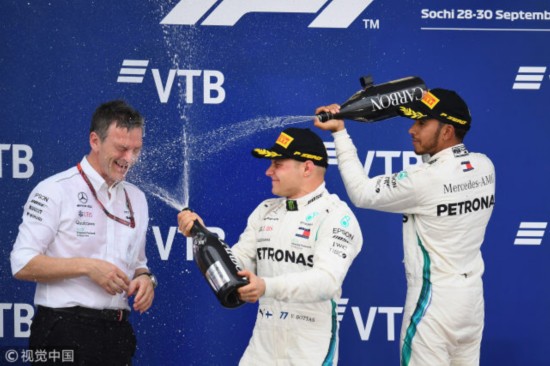 腾讯体育讯 北京时间9月30日消息,今日进行的F1俄罗斯大奖赛结果可谓波澜不惊,从头排位置发车的梅赛德斯车队最终包揽了冠亚军。不过比赛中梅赛德斯让博塔斯为汉密尔顿让车的行为还是在赛后引起了巨大的争议,博塔斯赛后显得比较懊恼,不过他还是表示尊重车队的安排。