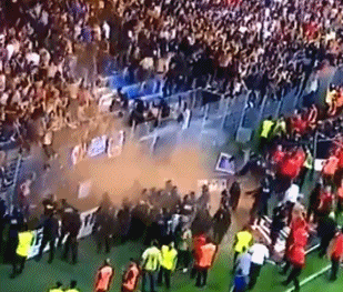 腾讯体育讯 在10月1日凌晨结束的一场法甲联赛上,蒙彼利埃3球击败德比对手尼姆。这场比赛气氛非常火爆,比赛曾2次意外中断,上半场主队破门后庆祝的人群将栏杆冲垮,下半时进入到80分钟后蒙彼利埃球迷与警察再次爆发激烈冲突。