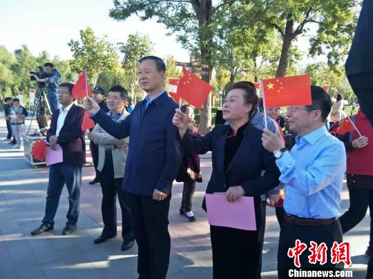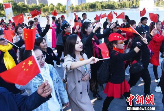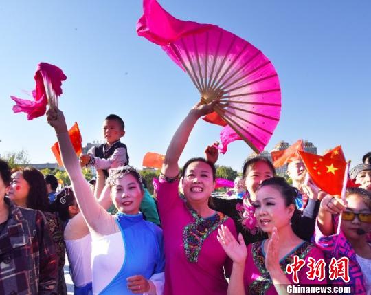图为廊坊市委常委、宣传部长、统战部长奚献军(右三)出席国庆快闪活动。 王巍 摄
