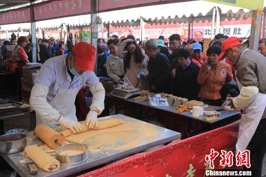 庙会上美食汇集。图为朝鲜族特色的打糕。 沈殿成 摄