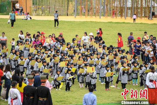 众多小朋友现场感受国学教育。 杨华峰 摄