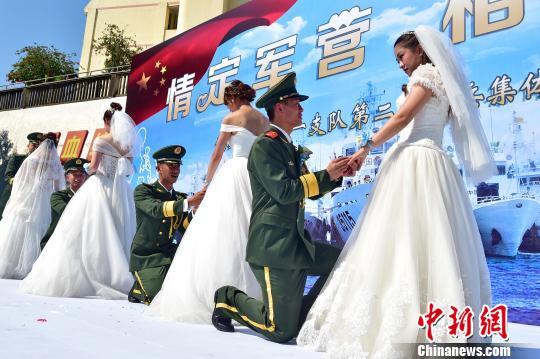 中新网福州10月1日电 (沈灿煌 袁冠卿)福建海警一支队9月30日在福州市马尾区亭江镇海警营区,为5名推迟婚礼的官兵和他们的新娘举办了一场简朴又浪漫的集体婚礼。