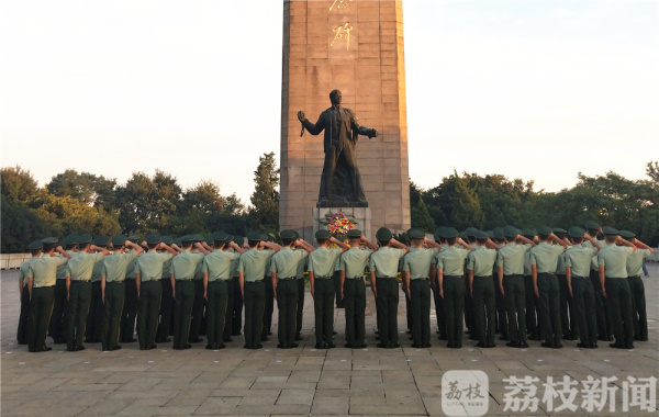 在雨花烈士英雄碑下,执勤十中队官兵以国旗为证,请祖国放心,战位有我,召之必胜!