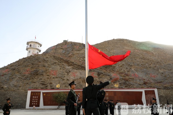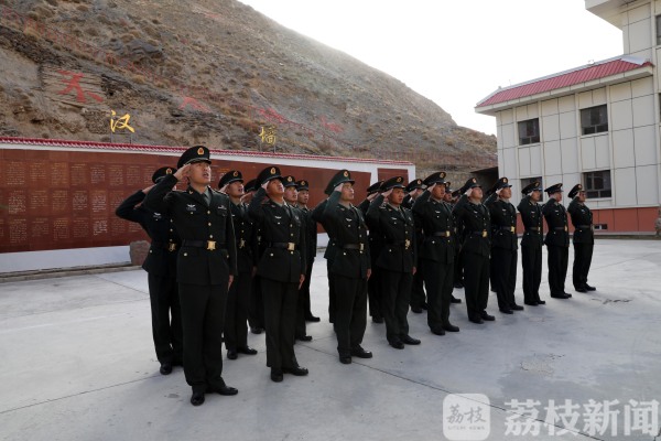 “向国旗敬礼” 国旗下,在场所有人员庄严肃立、军容严整、士气高昂,向国旗行举手礼,展现了戍边官兵铁心向党的坚定决心。