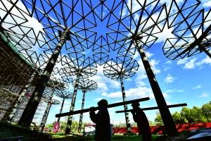 北京晨报讯(记者 王萍)北京晨报记者日前从北京建工集团了解到,2019北京世园会园区的核心建筑群之一——北京世园会演艺广场工程将首次采用多色彩ETFE拼图膜结构,5440平方米的膜结构将呈现深红、深绿、橙色、蓝色、红色、绿色6种色彩,在拉索钢绞线的张拉下呈现出“蝴蝶展翼”的造型。