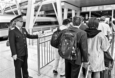 不过压力虽然大,可是王浦安心里挺踏实,这份踏实源于他对中国铁路智能化发展的信心。“我是一步步看着北京南站检票系统从手检车票,到刷身份证进站再到刷脸进站过来的,发展太快了。”王浦安告诉北青报记者,以前手检车票,票只要和车次对上就能放行,2012年6月1日起,中国铁路开始推行实名制验证验票进站,第一次要求票证人统一才能进站,这也为后来刷身份证直接进站乘车打下了基础。“现在更先进了,这个国庆节,京津城际场所有闸机更换为实名制检票闸机,该闸机实现了人脸识别、验票、检票功能的高度集成,已订票的旅客无论是否取票均可通过刷身份证,并经人脸识别后快速进站。经现场检测,检票速度较以往提高一倍。”说起北京南站检票的变化,王浦安一脸的兴奋。