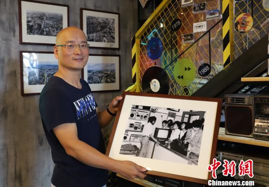 图为:王益群介绍一张市民买电视机的老照片。 胡小丽 摄