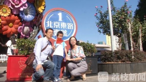 一对年轻的父母让孩子带着国旗出来,拍了一张有纪念意义的照片上传到班级群里。这位父亲说:“从小就对孩子进行教育,让他长大后爱国,这更有意义。”