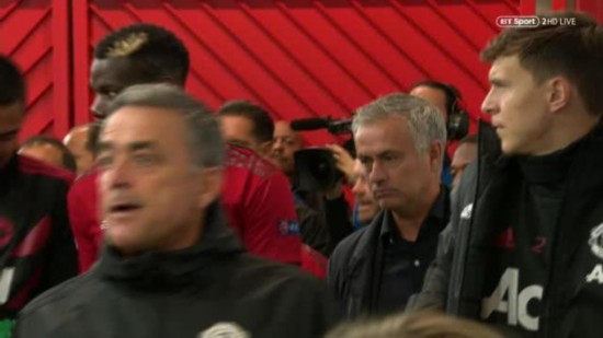 赛前,媒体纷纷揣测博格巴与桑切斯会否出现在这场比赛的首发阵容里,结果为了止住颓势,穆里尼奥还是暂时放下个人恩怨,把曼联两大巨星排进先发。但赛前在球员通道里发生的一幕还是令球迷感到担忧:穆帅循例等待手下球员们出列,斯莫林、卢克-肖、拜利以及替补门将罗梅罗等人从更衣室走出来之后,都与他握手并交谈。