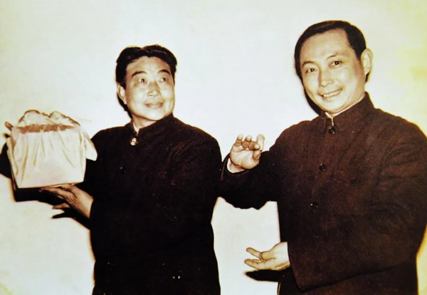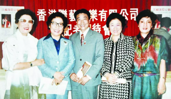 1984年11月,宋长荣率团赴香港演出,场场爆满,好评如潮。这是宋长荣(中)与齐啸云及香港文艺界同仁合影。